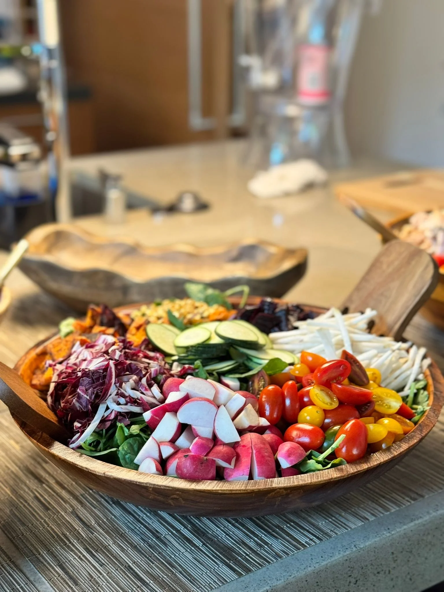 This was my creative, colorful contribution: jicama, blistered corn, roasted beets, radishes, radicchio,